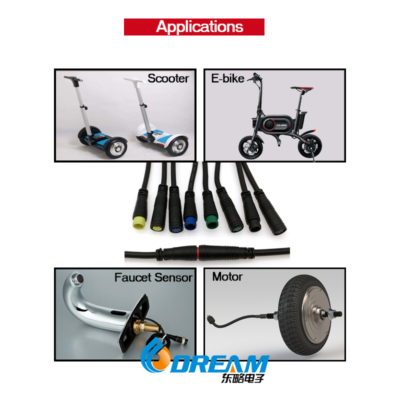 M8 IP65 2 3 4 5 6 8 芯電動自行車配件線信號線防水連接器